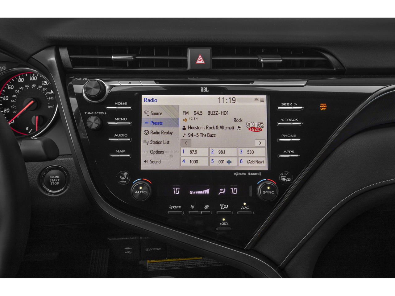 - Radio: Entune 3.0 Audio Plus w/App Suite -inc: 6 speakers, 8" touchscreen, AM/FM/HD Radio, CD player, auxiliary port, USB media port, 2 USB charge ports, advanced voice recognition, hands-free phone capability and music streaming via Bluetooth wireless technology, Scout GPS Link compatible w/up to 3-year trial, Siri Eyes Free, Apple CarPlay compatible, SiriusXM satellite radio w/3-month All Access trial and Entune 3.0 Toyota Connected Services including Safety Connect w/3-year trial, Service Connect w/3-year trial, Remote Connect w/6-month trial, Wi-Fi Connect Powered by Verizon w/up to 2GB within 6-month trial and Qi-compatible wireless smartphone charging