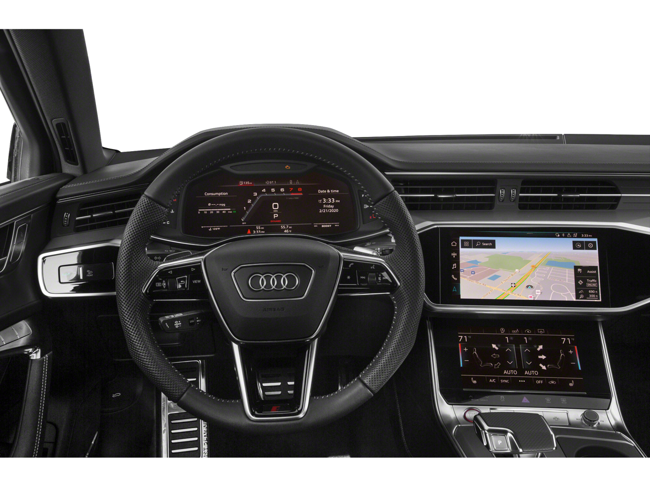 - Radio: MMI Navigation w/MMI Touch Response -inc: 10.1" upper and 8.6" lower screens, Audi smartphone interface (wired Android Auto and wireless Apple CarPlay), Bang & Olfusen 3D premium sound system, preparation for mobile phone (Bluetooth) and SiriusXM All Access service (w/3-month trial subscription)