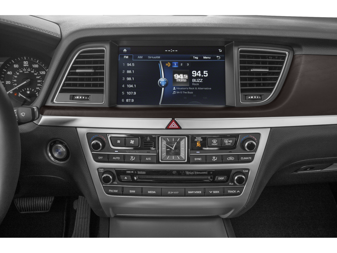 - Radio: AM/FM/HD/SiriusXM/MP3 Audio System -inc: 900 Watts, Lexicon 17 high efficiency speakers w/subwoofer, 12-channel digital external amplifier, Quantum Logic surround sound, Clari-Fi music restoration, speed sensing volume control, 9.2" 720p HD touchscreen, premium navigation system w/DIS multi-media controller, HD Radio Traffic, Apple CarPlay, Android Auto, Bluetooth hands-free phone system w/audio streaming, steering wheel controls, 2 front USB ports, 1 front 12v power outlet, wireless charging pad and Genesis Connected Services, Driver Information System w/ Multimedia Controller, Use to navigate and control: HD Radio tuning, Bluetooth connection and calling w/address book, navigation system controls, vehicle set-up, vehicle information, (Note: System also provides full touchscreen capability)