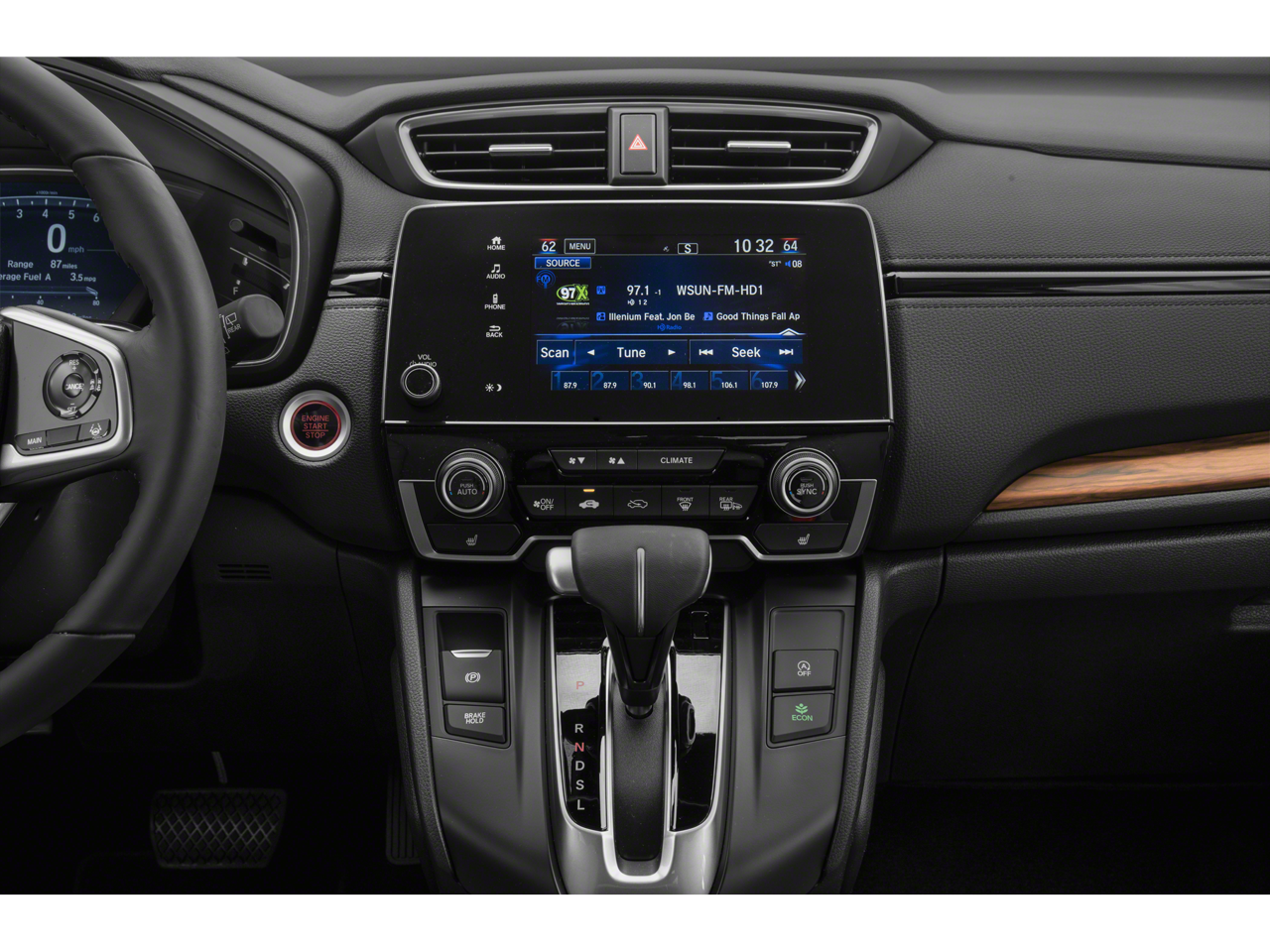 - Radio: 180-Watt AM/FM/HD/SiriusXM Audio System -inc: 8 speakers, 7" display w/high-resolution electrostatic touch-screen, customizable feature settings, compass, Bluetooth HandsFreeLink and streaming audio, Pandora compatibility, Radio Data System (RDS), Speed-sensitive Volume Compensation (SVC), 1.0-Amp USB audio interface, 1.5-Amp USB smartphone/audio interface w/port in front console, HondaLink, Apple CarPlay integration, Android Auto integration and SMS text message function, All SiriusXM services require a subscription, sold separately by SiriusXM after the trial period, If you decide to continue service, the plan you choose will automatically renew at the then-current rates, Fees and taxes apply, See the SiriusXM customer agreement and privacy policy at www.siriusxm.com for full terms and how to cancel, which includes calling 1-866-635-2349, Available in the 48 contiguous U.S, and D.C, Some services and features are subject to device capabilities and location restrictions, All fees, content and features are subject to change
