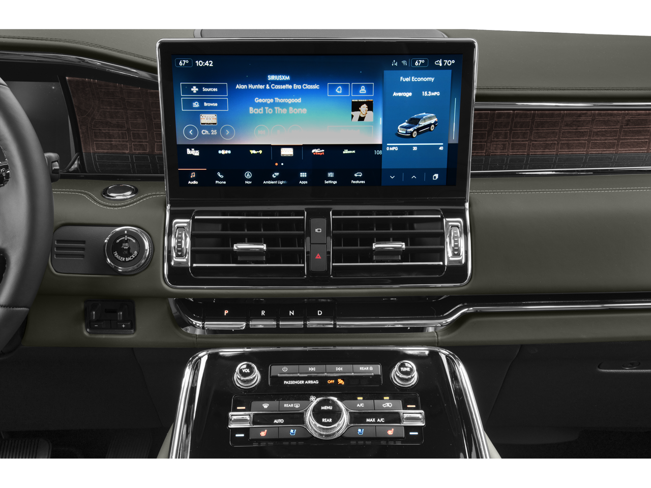 26mm Radiator, Active Park Assist 2.0 Delete, Adaptive suspension, Adjustable pedals, Auto Start-Stop Technology, Auto-leveling suspension, Class IV w/4-Pin & 7-Pin Connectors, Electronic Traction Assist (eLSD), Emergency communication system: 911 Assist, Equipment Group 800A Black Label, Exterior Parking Camera Rear, Four wheel independent suspension, Front Tow Hooks, Head restraints memory, Heads-Up Display, Heavy-Duty Trailer Tow Package, Memory seat, Power Liftgate, Power moonroof: Panoramic Vista Roof, Pro-Trailer Backup Assist 2.0, Radio: Revel Ultima 3D Audio System w/28 Speakers, SiriusXM w/360L, Smart Trailer Tow, Spoiler, Steering wheel memory, Steering wheel mounted audio controls, SYNC 4 Communications & Entertainment System, Tiered Cargo Area Management System, Trailer Brake Controller, Trailer Sway Control, Voice-Activated Touchscreen Navigation System, Wheels: 22 14-Spoke Bright Machined Aluminum. Clean CARFAX. CARFAX One-Owner.What is Posted Pricing? Posted Pricing is our Competitive, Upfront, and No-Hassle approach to pricing our inventory. How does Posted Pricing benefit me, the customer? Posted Pricing eliminates the need for traditional negotiation from an inflated starting price, providing a transparent, no-hassle transaction. Visit NPLincoln.com for more information about our award-winning customer experience. Want us to come to you? No problem! Virtual Test Drives and Trade Appraisals: Just ask and we’ll send you a live video walk around of the vehicle you are considering, and we can do the same for your trade..North Park Lincoln is pleased to offer this beautiful-looking 2023 Lincoln Navigator L L Black Label. Well equipped with Equipment Group 800A Black Label, Heavy-Duty Trailer Tow Package (26mm Radiator, Class IV w/4-Pin & 7-Pin Connectors, Electronic Traction Assist (eLSD), Front Tow Hooks, Pro-Trailer Backup Assist 2.0, Smart Trailer Tow, Tiered Cargo Area Management System, Trailer Brake Controller, and Trailer Sway Control), Active Park Assist 2.0 Delete, Adaptive suspension, Adjustable pedals, Auto Start-Stop Technology, Auto-leveling suspension, Emergency communication system: 911 Assist, Exterior Parking Camera Rear, Four wheel independent suspension, Head restraints memory, Heads-Up Display, Memory seat, Power Liftgate, Power moonroof: Panoramic Vista Roof, Radio: Revel Ultima 3D Audio System w/28 Speakers, SiriusXM w/360L, Spoiler, Steering wheel memory, Steering wheel mounted audio controls, SYNC 4 Communications & Entertainment System, Voice-Activated Touchscreen Navigation System, Wheels: 22 14-Spoke Bright Machined Aluminum, 28 Speakers, 2nd Row Htd/Vent Enhcd Massage Seats w/out Console, 3.73 Axle Ratio, 3rd row seats: split-bench, 4-Wheel Disc Brakes, ABS brakes, Air Conditioning, Alloy wheels, AM/FM radio: SiriusXM with 360L, Audio memory, Auto High-beam Headlights, Auto tilt-away steering wheel, Auto-dimming door mirrors, Auto-dimming Rear-View mirror, Automatic temperature control, Bodyside moldings, Brake assist, Bumpers: body-color, Compass, Delay-off headlights, Driver door bin, Driver vanity mirror, Driver's Seat Mounted Armrest, Dual front impact airbags, Dual front side impact airbags, Electronic Stability Control, Floor Carpet/Mats - Espresso w/Dinamica Suede, Front anti-roll bar, Front Bucket Seats, Front dual zone A/C, Front fog lights, Front reading lights, Fully automatic headlights, Garage door transmitter, Genuine wood console insert, Genuine wood door panel insert, Hands-Free Liftgate Delete, Headliner - Alpine Dinamica Suede, Heated door mirrors, Heated front seats, Heated rear seats, Heated steering wheel, HVAC memory, Illuminated entry, Leather steering wheel, Leather-Wrapped Interior - Alpine w/Black Stitch, Low tire pressure warning, Navigation system: Connected Navigation (3-year trial), Occupant sensing airbag, Outside temperature display, Overhead airbag, Overhead console, Panic alarm, Passenger door bin, Passenger seat mounted armr