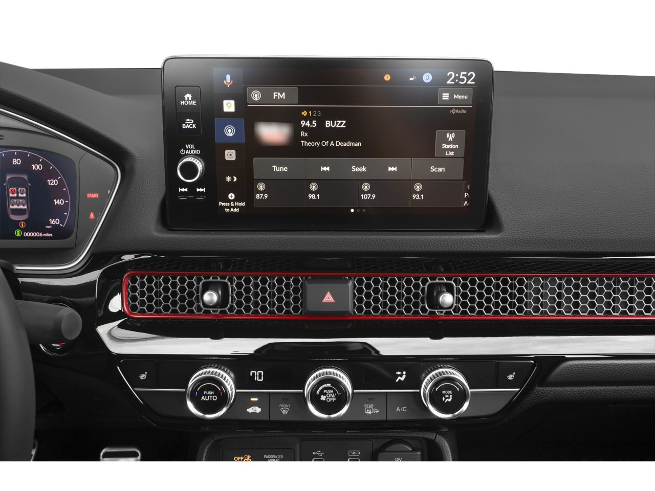 - Radio: BOSE Premium Sound System -inc: 12 speakers w/subwoofer, 9" color touchscreen, Google built-in w/3 years unlimited data plan for in-vehicle apps, Alexa built-in, Bluetooth HandsFreeLink, Bluetooth streaming audio, HondaLink, Speed-Sensitive Volume Compensation (SVC), Radio Data System (RDS), wireless Apple CarPlay and Android Auto compatibility, Wi-Fi hotspot capability, 2 USB-C 3.0A smartphone/audio interface and HD Radio
